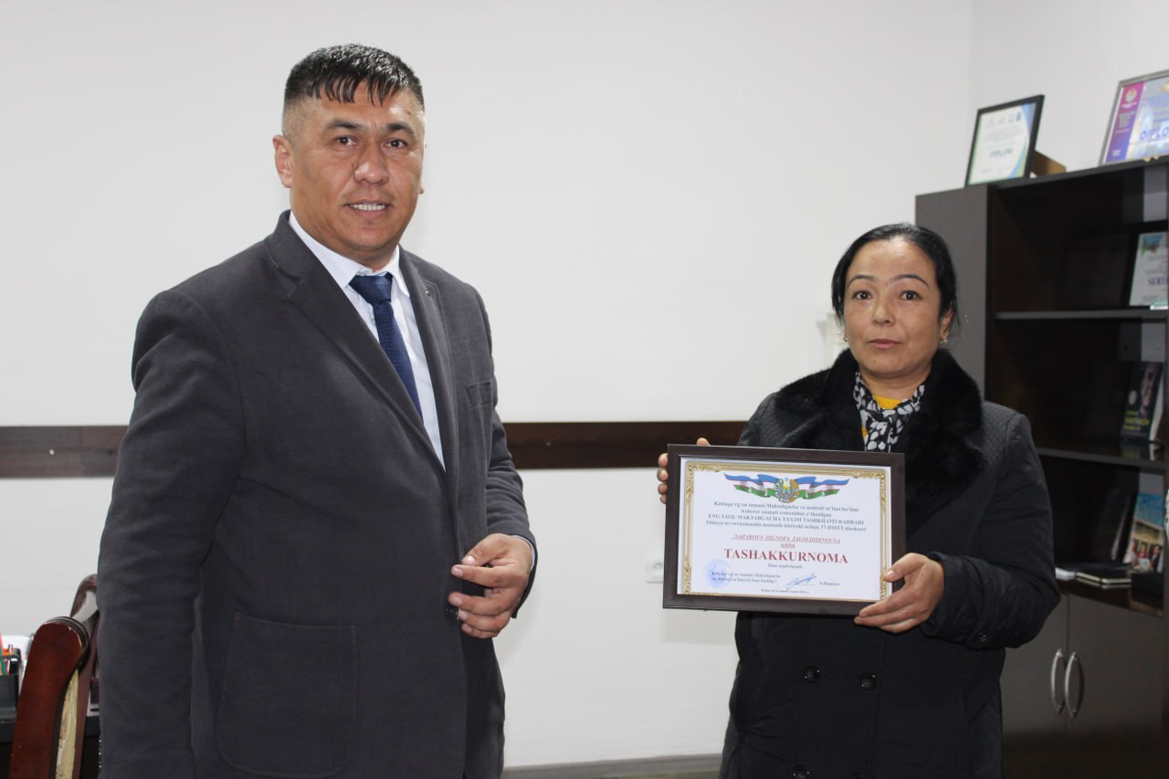 ENG FAOL MAKTABGACHA TA’LIM TASHKILOTI RAHBARI TAQDIRLANDI!