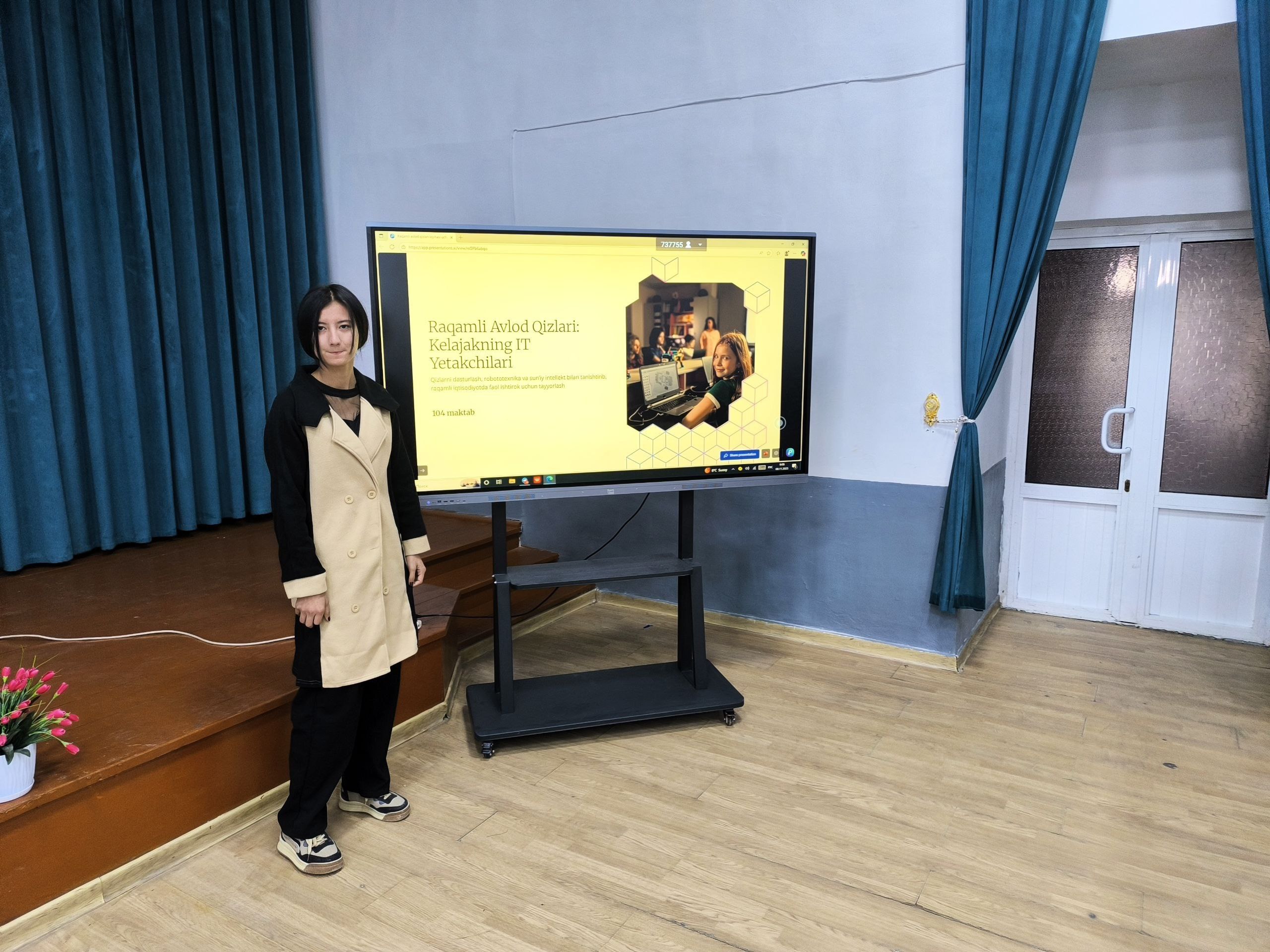 Каттақўрғон туманида “Рақамли авлод қизлари” танловининг туман босқичи бўлиб ўтди. Танловда жами 826 нафар иқтидорли қизлар “Таълим”, “Сунъий интеллект”, “Иқлим ўзгариши” ва “Яшил иқтисодиёт” йўналишлари бўйича ўзларининг инновацион лойиҳаларини тақдим этдилар.